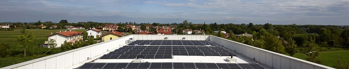 Seniorenresidenz in Cinto Caomaggiore in der Provinz Venedig, wo der Einsatz des General-Fix-Systems von General Membrane es ermöglicht hat, eine Photovoltaikanlage zu installieren, ohne Löcher in das Dach zu bohren.